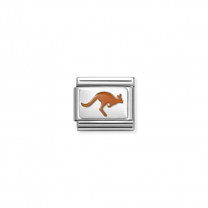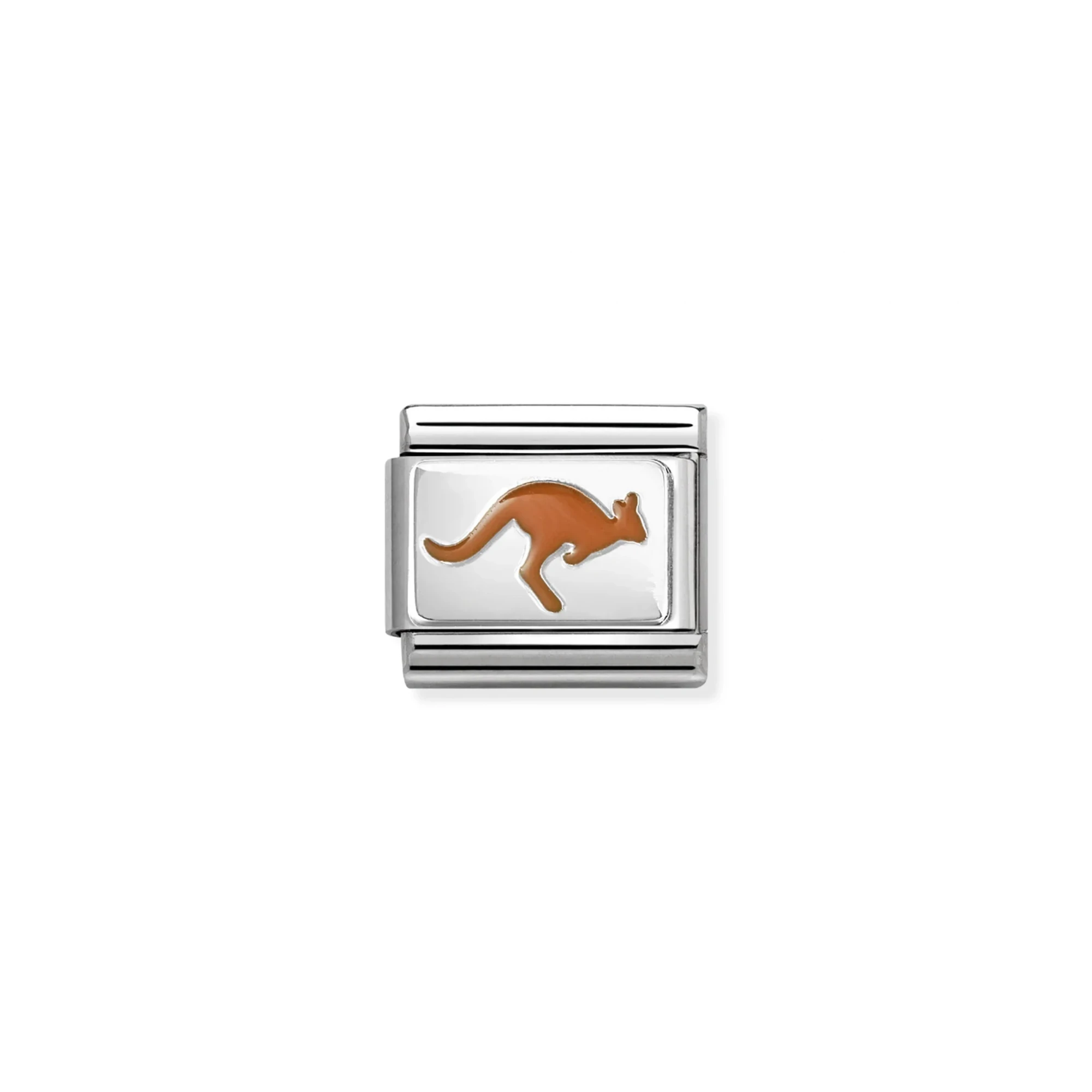 Original link for bracelet with a Kangaroo symbol in sterling silver & brown enamel. Made in Italy. This link is perfect to celebrate your love for Australia or a Kangaroo.