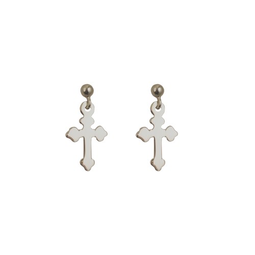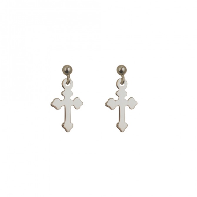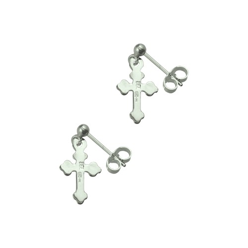 Sterling Silver 13x10mm plain Cross dropper Earrings. Made and hand polished in Birmingham.