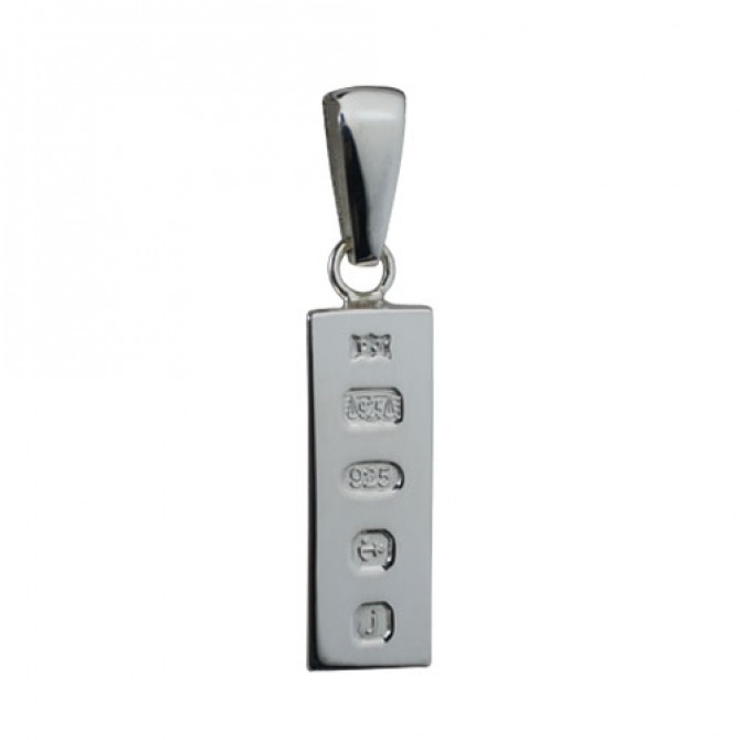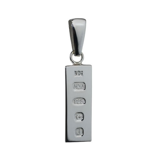 Sterling Silver 22x8mm Display Hallmark 1/4oz Ingot pendant with bail. First made in 1977 to commemorate the silver Jubilee of Her majesty the Queen, the unique date letter for each year struck by the Assay Office makes this an ideal special occasion gift where the year is significant. The reverse is plain and suitable for engraving. Made and hand polished in Birmingham.