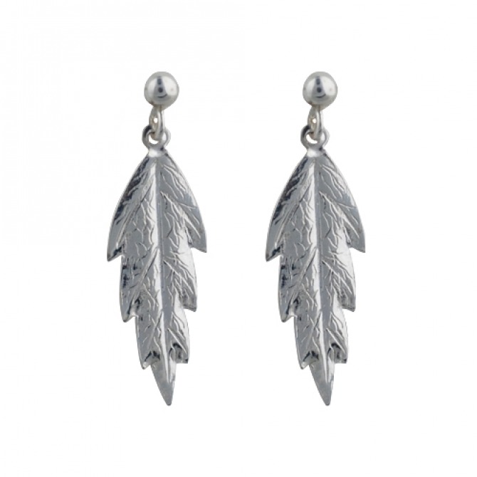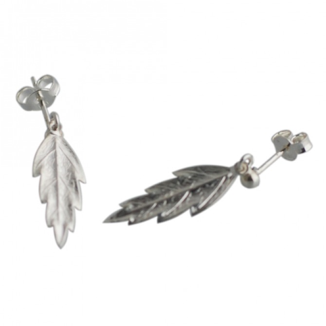 Sterling Silver 29x8mm leaf embossed Earring Droppers. Made and hand polished in Birmingham.