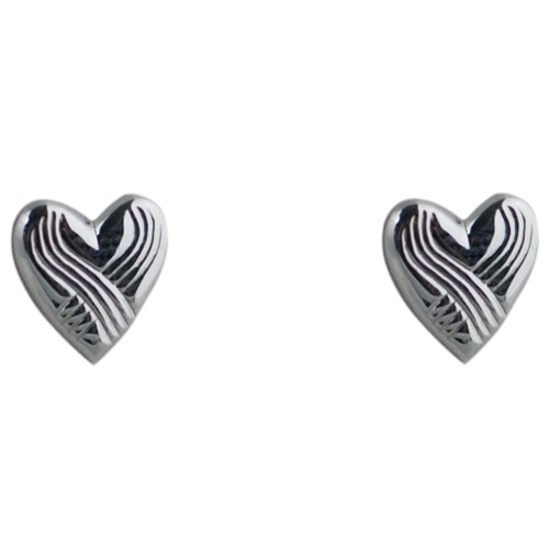 Sterling Silver 8x8mm embossed lines pattern heart shaped stud Earrings. Made and hand polished in our Birmingham factory. Please note due to the Handmade nature of this product weights, dimensions & measurements can slightly vary.