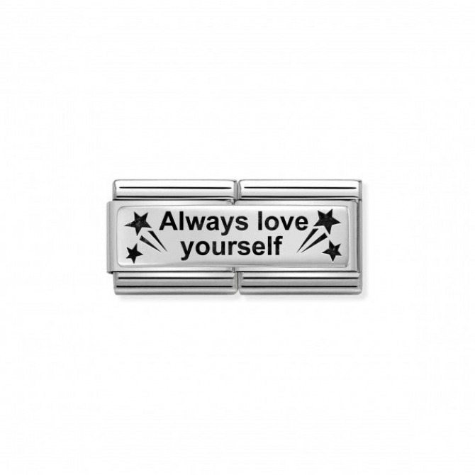 Original Nomination Double Link for Composable Classic Bracelets in stainless steel with sterling silver symbol with message ALWAYS LOVE YOURSELF. Made in Italy. This Link reminds you to love yourself for who you are and you will have the love and respect of those around you.