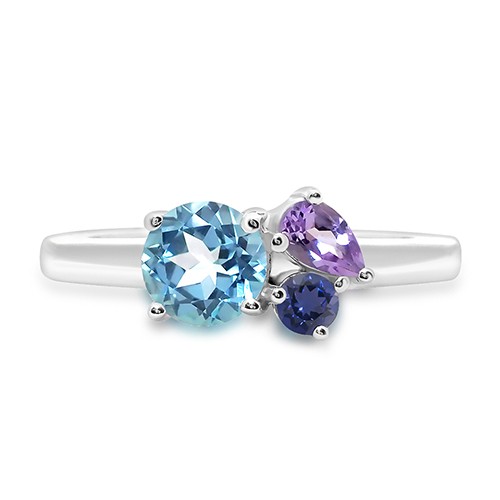 Silver with Amethyst Blue Topaz & Iolite Ring