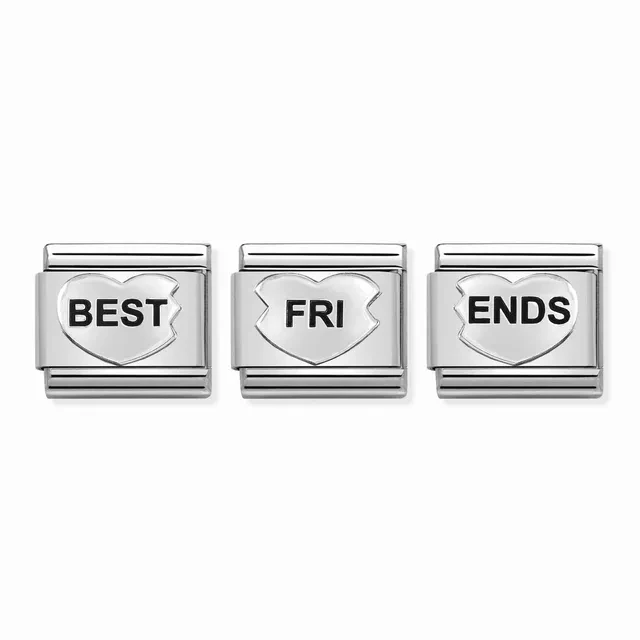 Stainless steel with sterling silver. Designed to be teamed up with two matching charms, divided between three of your closest friends when brought together will read ' Best Friends' #oneforyouoneforme
