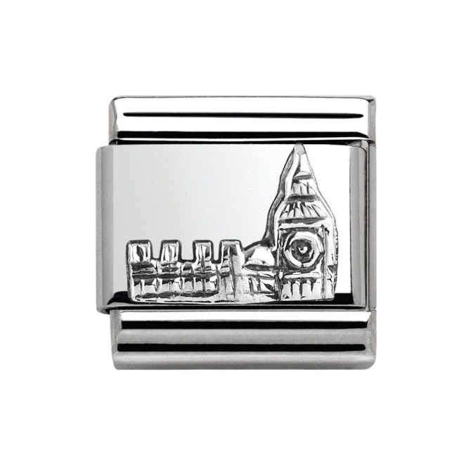 Original Charm for Composable Classic Bracelet in stainless steel and sterling silver. Symbol of Big Ben, England. Made in Italy. Choose your most precious souvenir from the new silver charms in the Composable Collection.