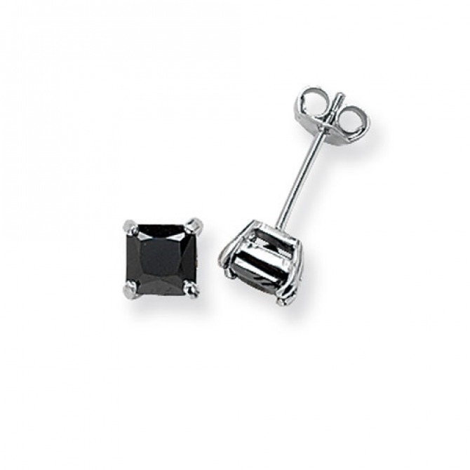 Sterling silver with black cubic zirconia 6mm square stud earrings.