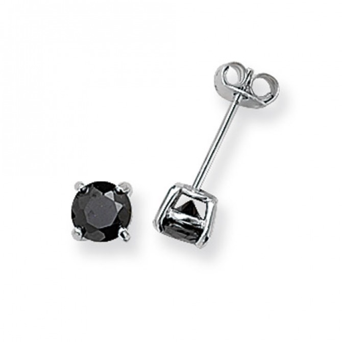 Sterling silver with black cubic zirconia 5mm stud earrings.