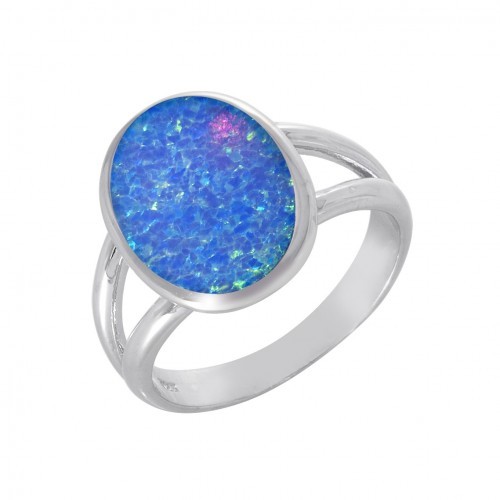 Sterling silver with blue created opal ring.