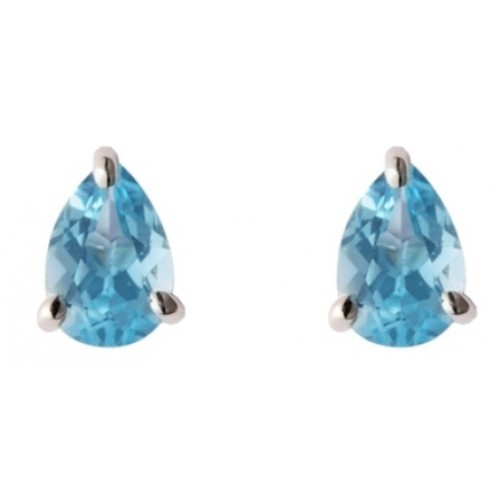 Sterling silver with claw set pear shaped blue topaz stud earrings.