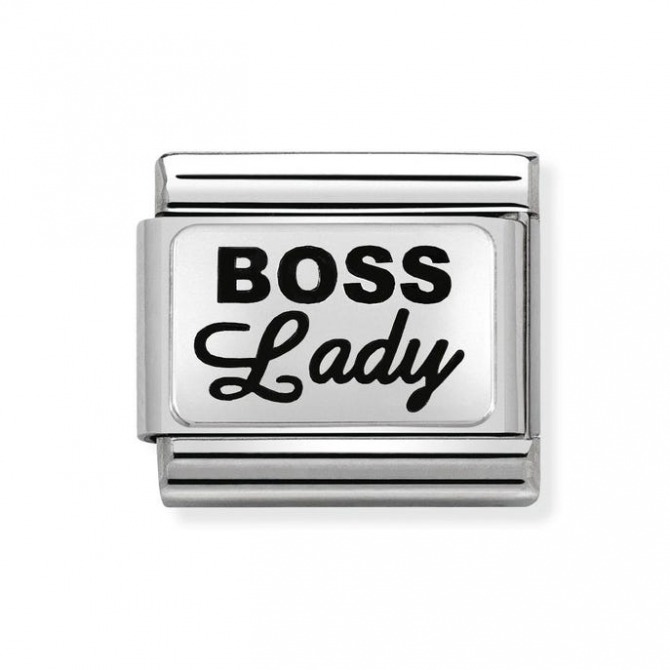 Charm for the original Composable Classic bracelet in stainless steel with ”Boss Lady” in sterling silver and enamel. Made in Italy. Gift this Charm to the woman who stole your heart.