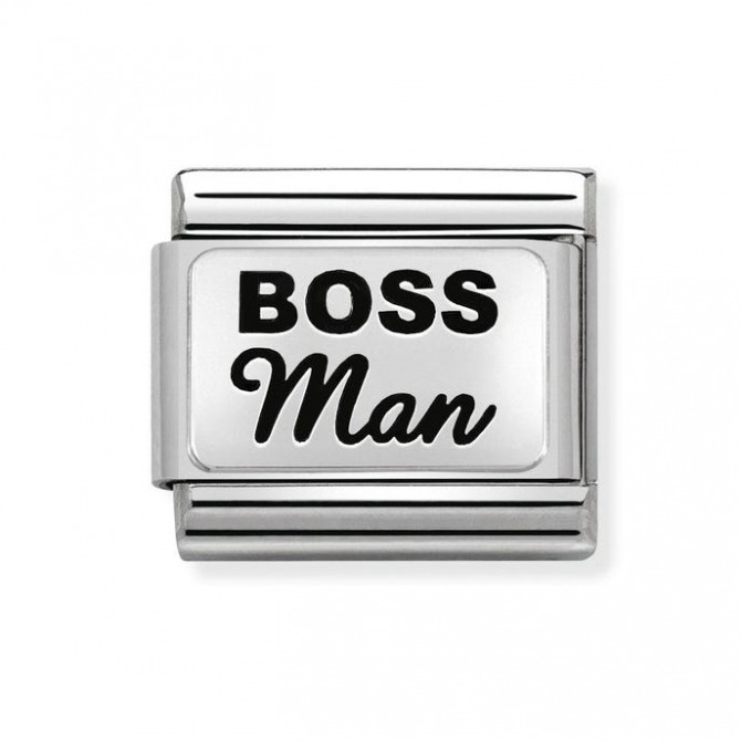 Charm for the original Composable Classic bracelet in stainless steel with ”Boss Man” in sterling silver and enamel. Made in Italy. For the man who stole your heart. #oneformeoneforyou
