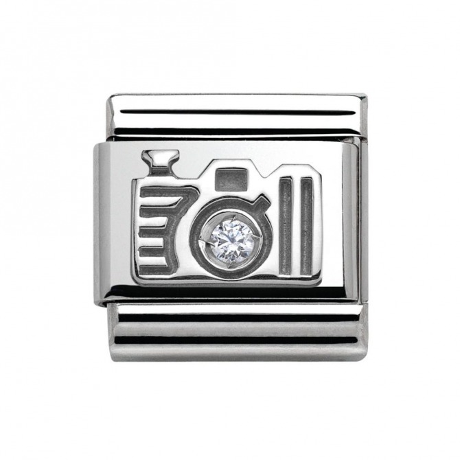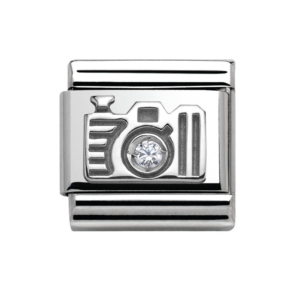 Stainless steel Original Nomination Classic Charm for Composable Bracelet with Camera symbol in sterling silver and Cubic Zirconia. Made in Italy. Choose your favourite symbol and tell your story with Composable!