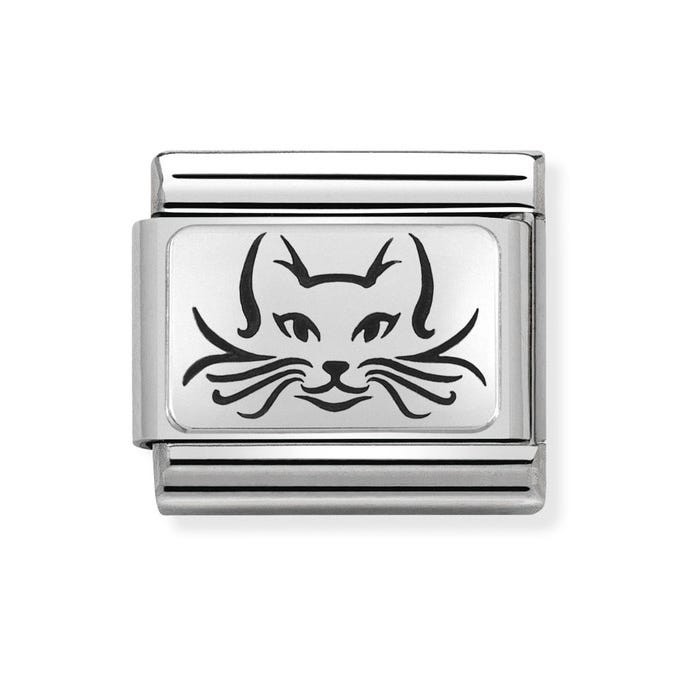 Original Charm for Nomination's Composable Classic bracelet in stainless steel and sterling silver with a Cat in black enamel. Made in Italy. We believe pets are an integral part of the family. If you agree, this is the perfect Charm to add to your Composable bracelet.