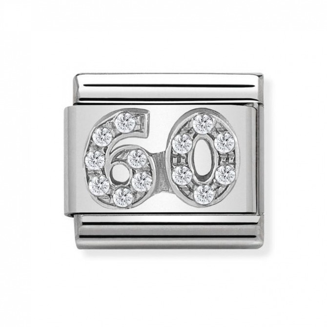 Original Charm for Nomination's Composable Classic bracelet in stainless steel with the Number 60 in sterling silver and white Cubic Zirconia. Made in Italy. Say it with Composable: "Happy Birthday to you!"