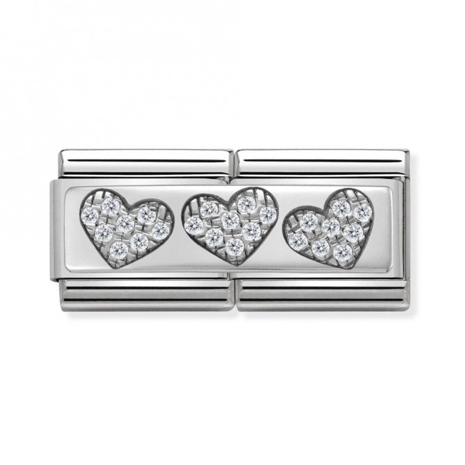 Original Charm for the Classic Composable bracelet in stainless steel, sterling silver and Cubic Zirconia with 3 Hearts. Made in Italy. Share your love story with Composable.