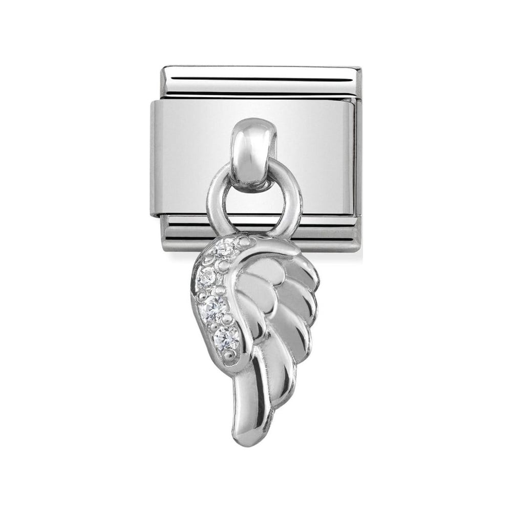 Original Charm for Nomination's Composable Classic Bracelet in stainless steel, sterling silver and Cubic Zirconia with Wings. Made in Italy. Combine this pendant with other Christmas symbols and really get into the holiday spirit!