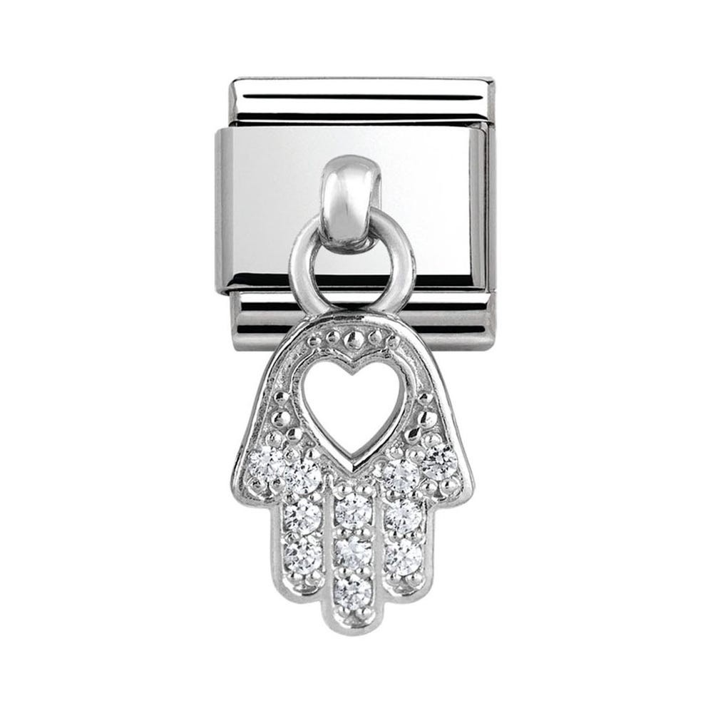 Classic Charm for Original Composable Bracelet with Hand of Fatima pendant in stainless steel, sterling silver and Cubic Zirconia. Made in Italy. This Charm stands for our ability to overcome and cope with challenges.