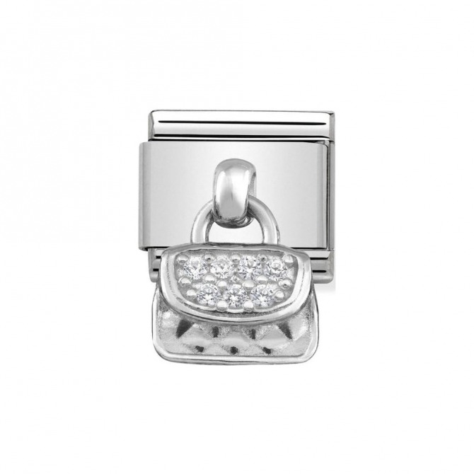 Original Charm for Nomination's Composable Classic Bracelet in stainless steel, sterling silver and Cubic Zirconia pendant. Available also in bonded yellow gold and rose gold. Made in Italy. The perfect gift for your fashionista friend.