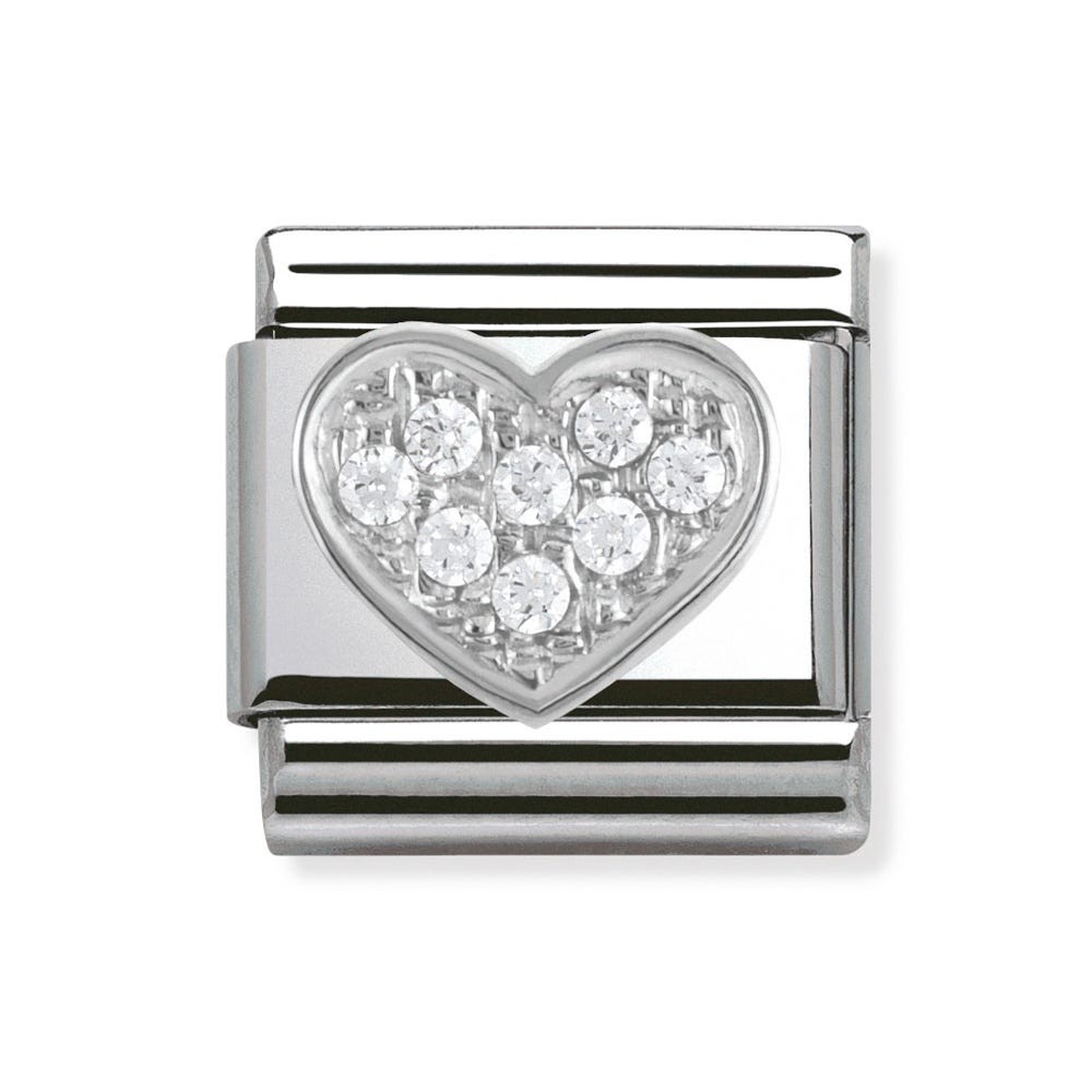 Original Charm for Nomination's Composable Classic Bracelet with Heart symbol in stainless steel, sterling silver and white Cubic Zirconia. Made in Italy. Wear your heart on your sleeve!