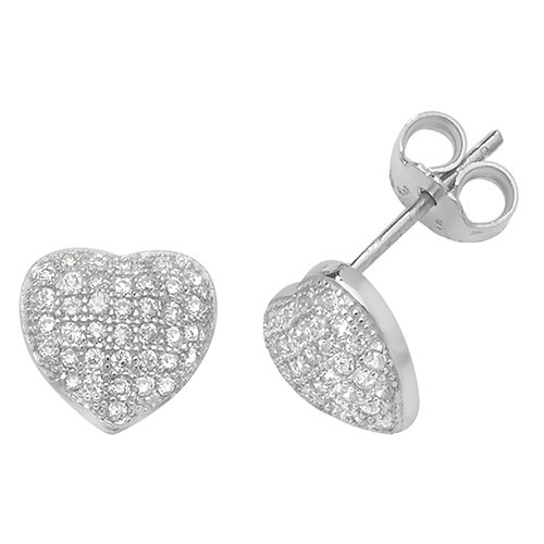 Sterling Silver & CZ Heart Stud Earrings