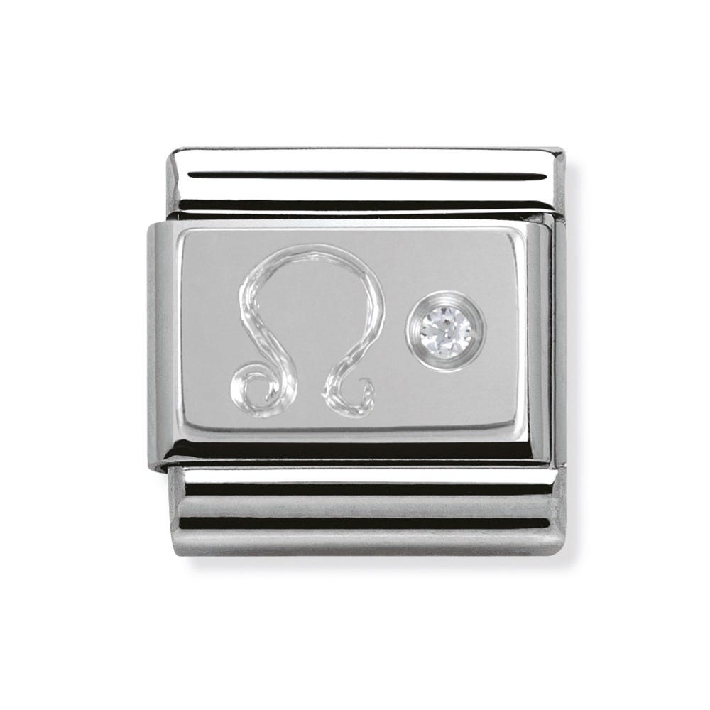 Original Zodiac Charm for Nomination's Composable Classic Bracelet with Leo symbol in stainless steel, sterling silver and Cubic Zirconia. All Zodiac symbols are available. Made in Italy. Leo's are creative, popular, and faithful.