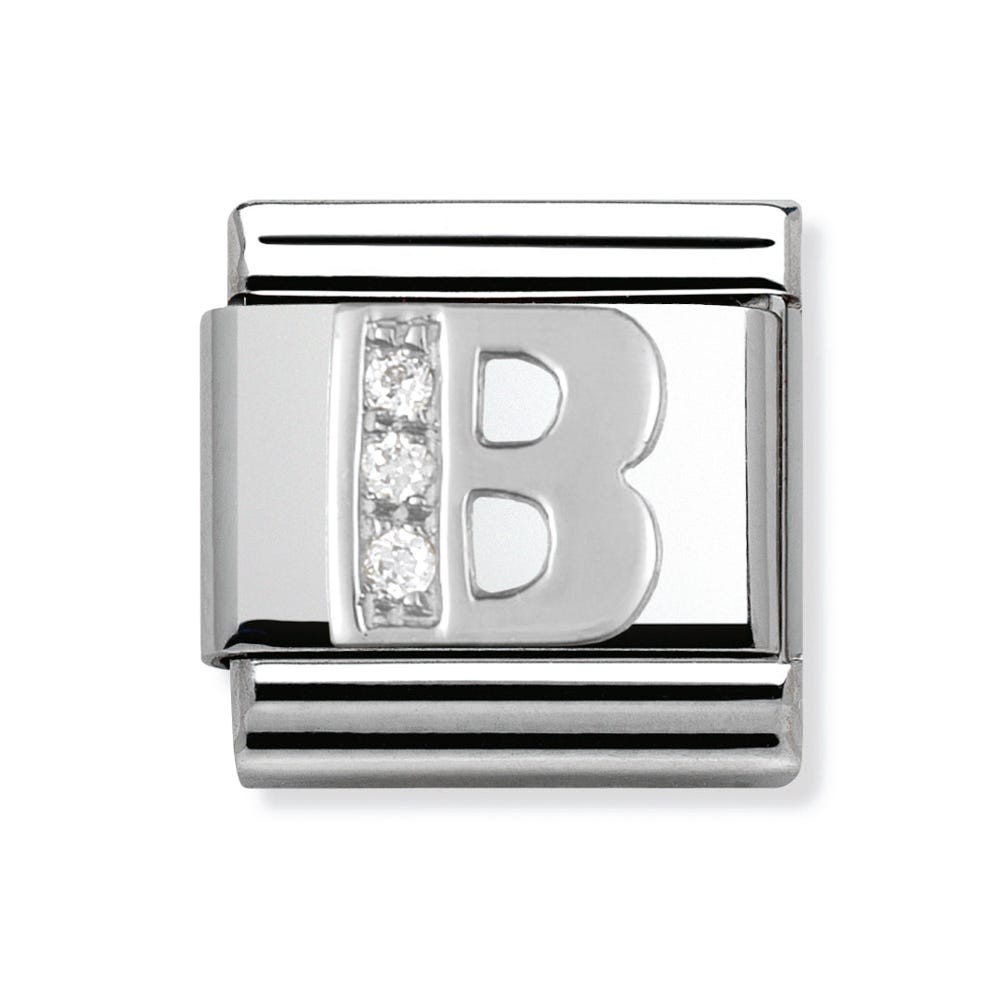Original Alphabet Charm for Nomination's Composable Classic Bracelet with Letter B in stainless steel, sterling silver and Cubic Zirconia. Available Charm versions: A-Z. Made in Italy. Add your loved one's initials to your bracelet!