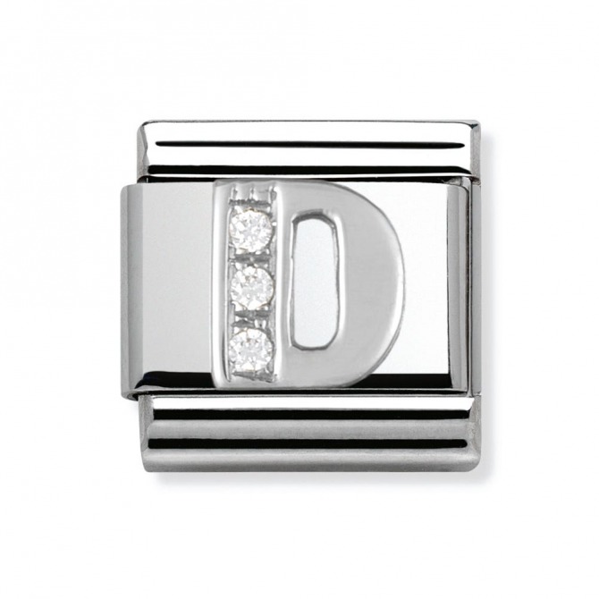 Original Alphabet Charm for Nomination's Composable Classic Bracelet with Letter D in stainless steel, sterling silver and Cubic Zirconia. Available Charm versions: A-Z. Made in Italy. Give your initials to the people you love.