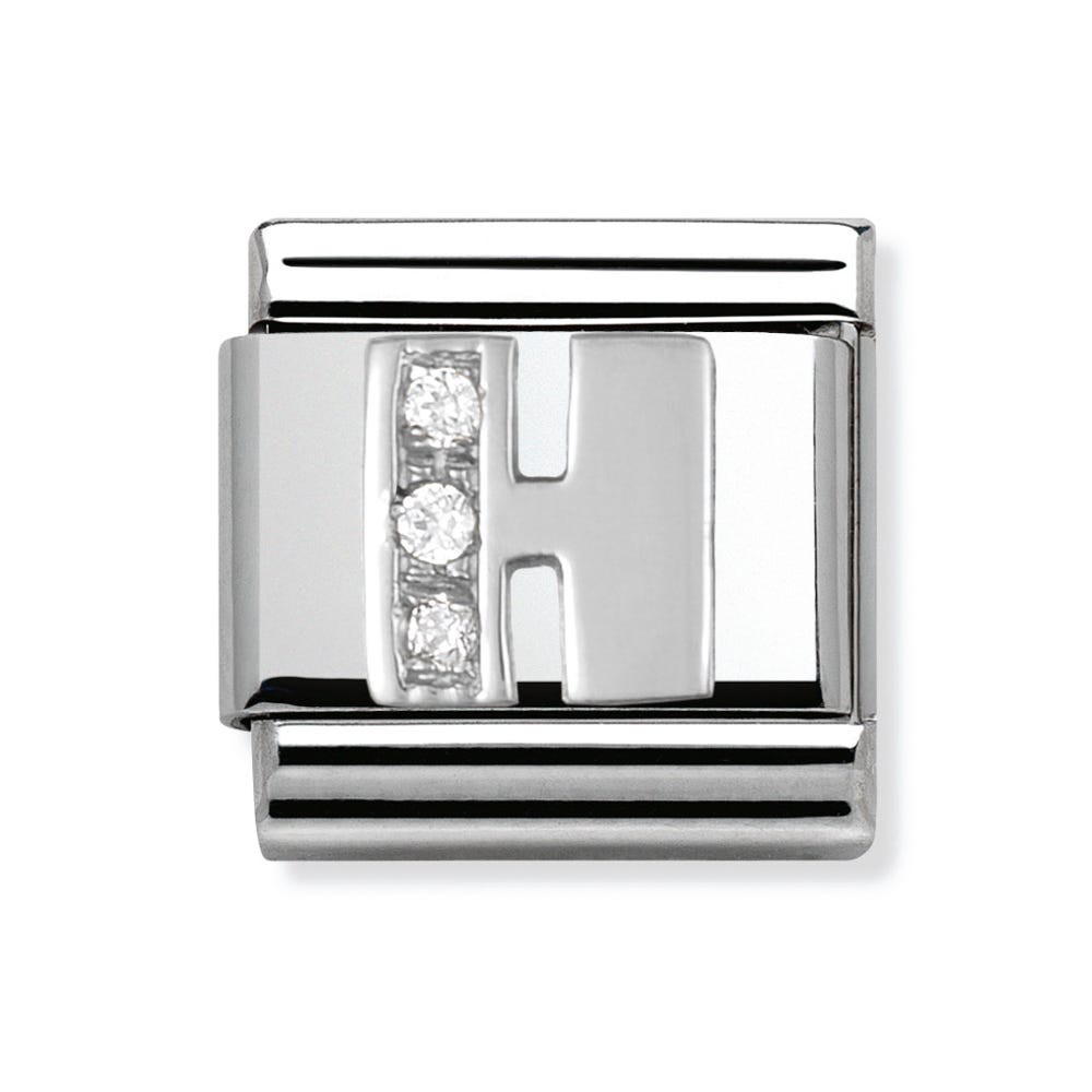 Original Alphabet Charm for Nomination's Composable Classic Bracelet with Letter H in stainless steel, sterling silver and Cubic Zirconia. Available Charm versions: A-Z. Made in Italy. Give your initials to the people you love.