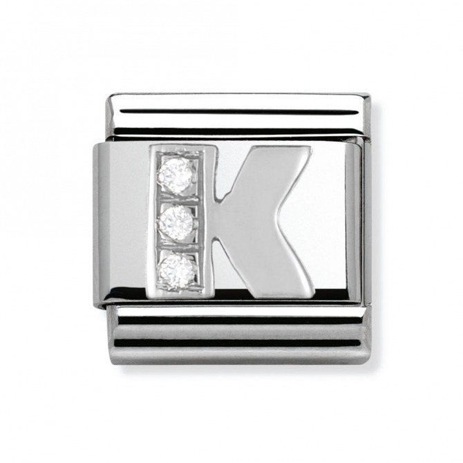 Original Alphabet Charm for Nomination's Composable Classic Bracelet with Letter K in stainless steel, sterling silver and Cubic Zirconia. Available Charm versions: A-Z. Made in Italy. Personalise your bracelet with your initials.
