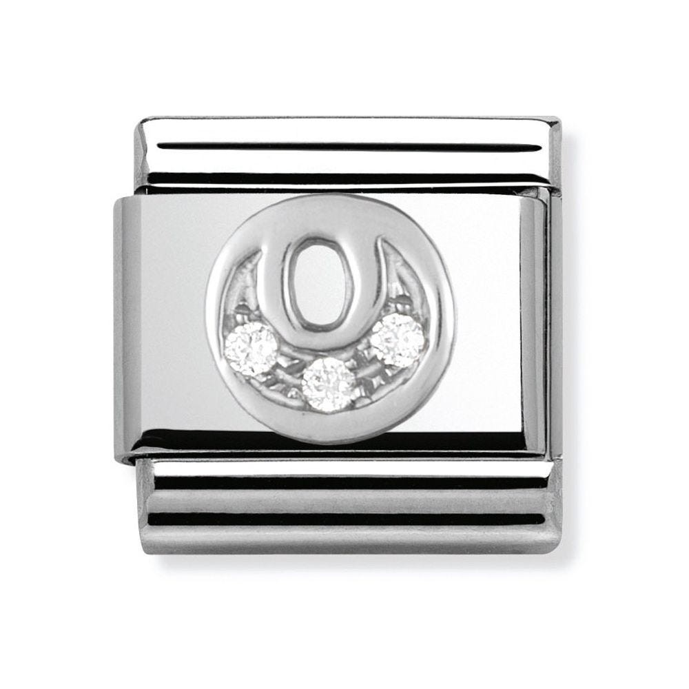 Original Alphabet Charm for Nomination's Composable Classic Bracelet with Letter O in stainless steel, sterling silver and Cubic Zirconia. Available Charm versions: A-Z. Made in Italy. Personalise your bracelet with your initials.