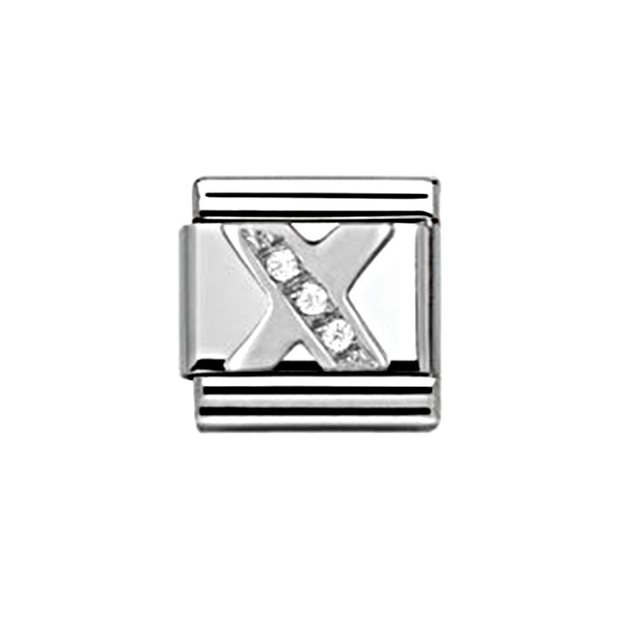 Original Alphabet Charm for Nomination's Composable Classic Bracelet with Letter X in stainless steel, sterling silver and Cubic Zirconia. Available Charm versions: A-Z. Made in Italy. Give your initials to the people you love.