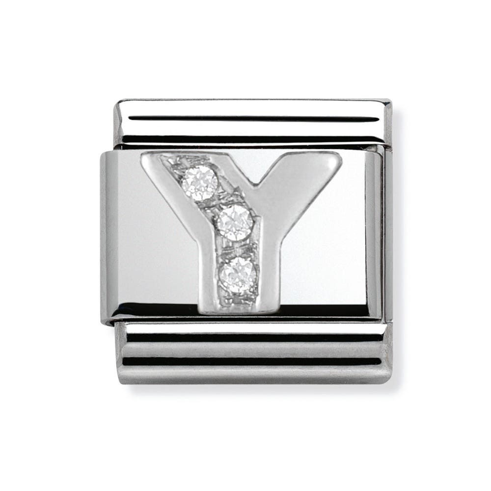 Original Alphabet Charm for Nomination's Composable Classic Bracelet with Letter Y in stainless steel, sterling silver and Cubic Zirconia. Available Charm versions: A-Z. Made in Italy.