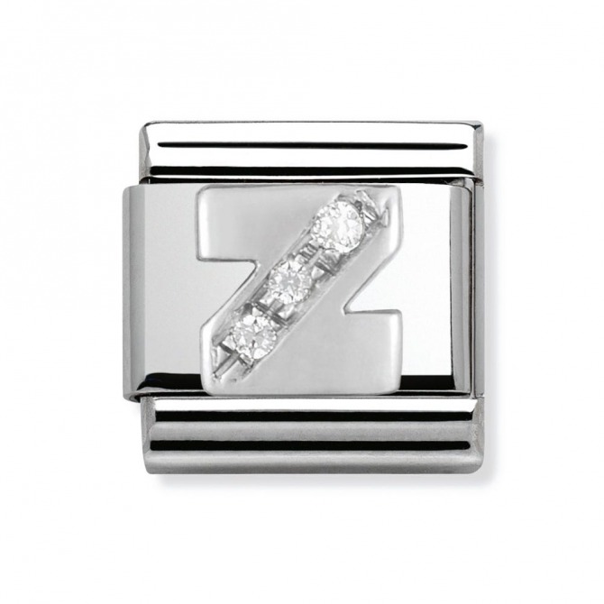 Original Alphabet Charm for Nomination's Composable Classic Bracelet with Letter Z in stainless steel, sterling silver and Cubic Zirconia. Available Charm versions: A-Z. Made in Italy.