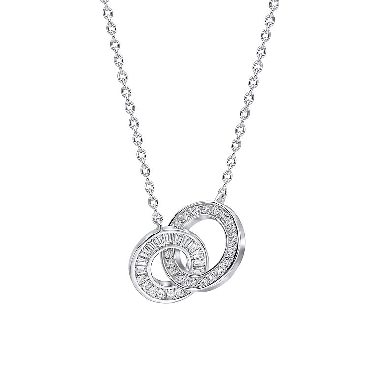 A mesmerising fusion of light and movement, this necklace is designed to dazzle with every turn. Crafted from sterling silver with a luxurious triple plating of platinum, palladium, and rhodium, it exudes an effortless brilliance that catches the eye. The interlocking circles, adorned with Diamonfire zirconia stones, create a luminous, sculptural effect—an elegant nod to timeless glamour. Perfect for special occasions, this necklace brings a touch of sophistication to any look, whether worn alone or paired with the matching earrings for a flawless, radiant finish.