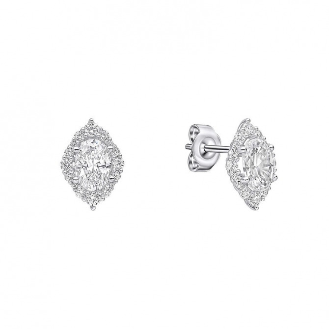 Designed to dazzle from every angle, these stud earrings bring effortless glamour to any occasion. Crafted in sterling silver with a luxurious triple plating of platinum, palladium, and rhodium, they feature a captivating oval-cut Diamonfire zirconia at the centre, surrounded by a halo of smaller stones for maximum brilliance. The timeless cluster design ensures they catch the light with every movement, making them the perfect choice for elegant soirées, weddings, or any moment that calls for full-glam sparkle. Pair with the matching pendant for a truly breathtaking ensemble.