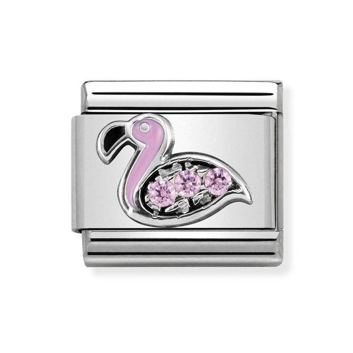 Original Charm for Nomination's Composable Classic bracelet in stainless steel, sterling silver and pink Cubic Zirconia with Flamingo symbol. Made in Italy. The pest of summer has arrived at Nomination!