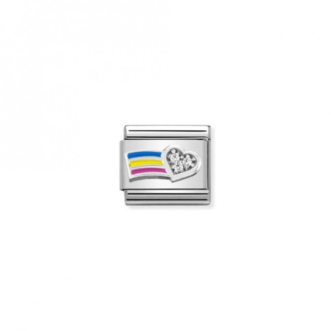 Add to your favourite Nomination bracelet with this gorgeous stainless steel charm, finished with a vibrant rainbow heart design set with Cubic Zirconia.