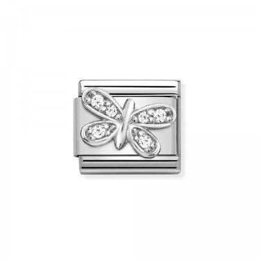 Original Charm for Nomination's Composable Classic Bracelet with Four-Leaf Clover symbol in stainless steel, sterling silver and white Cubic Zirconia. Made in Italy. Give the gift of good luck to your best friend.