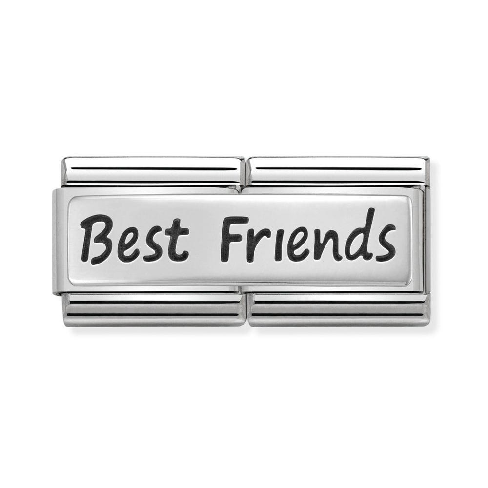Original Nomination Charm for the Composable Classic bracelet in stainless steel and sterling silver with "Best Friends" written out. Made in Italy. A true friend worries about you, is loyal and sincere, supports you, and helps out in times of need. Thank your best friend with this precious Charm, and show them how grateful you are for everything they do!