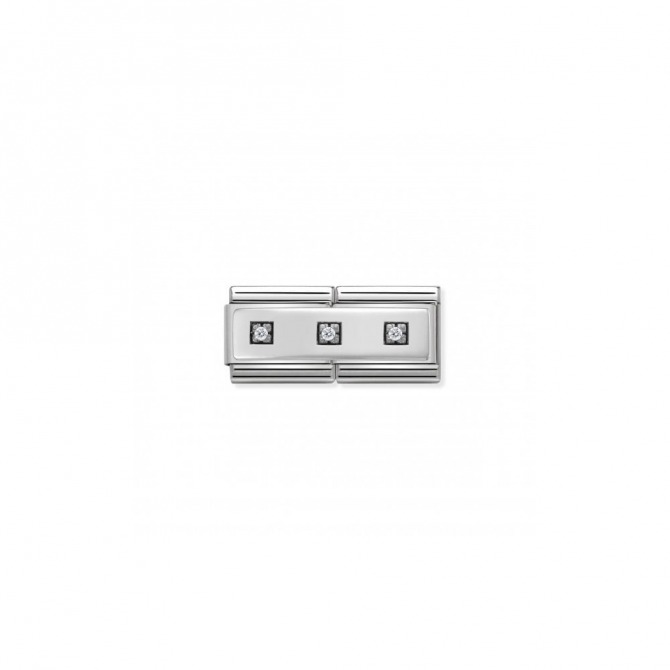Classic Silver Double Link Plate with 3 CZ Stones Charm. Original Charm for the Classic Composable bracelet in stainless steel and three Cubic Zirconia with plate in sterling silver. Made in Italy.