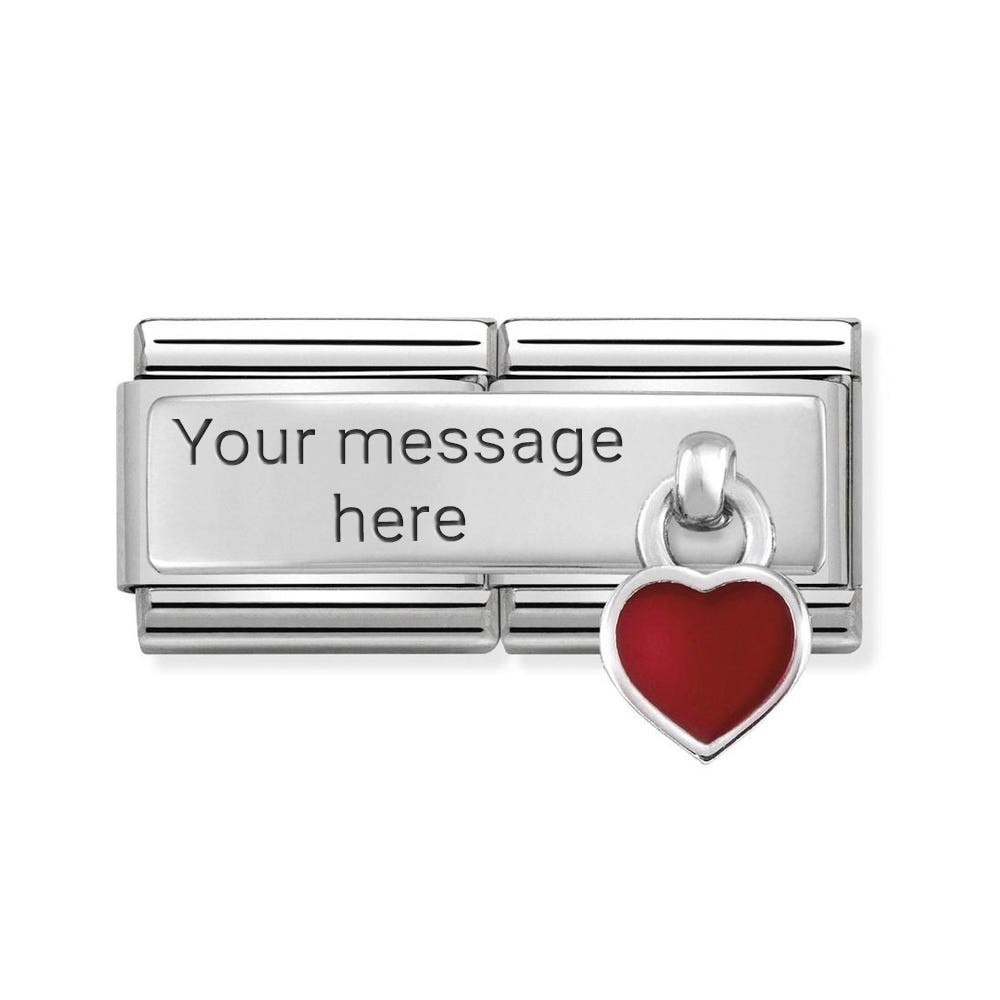 Original Engraving link for bracelet with plaque and pendant in sterling silver and enamel RED HEART. Made in Italy. This Engraving Link leaves room for your dedication to the one in your heart. The perfect gift for Valentine's Day or a Wedding Anniversary.