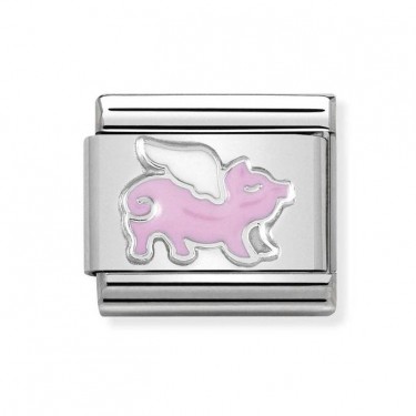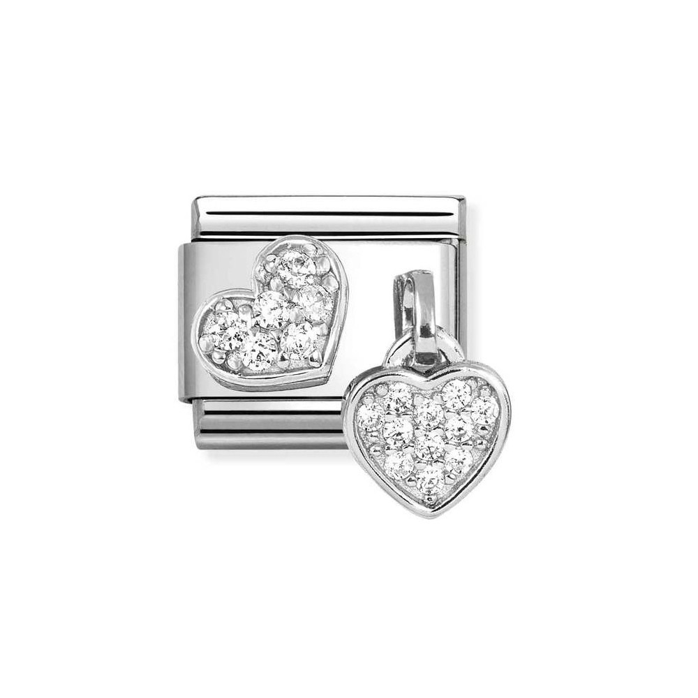 Original Nomination Classic Link in stainless steel with sterling silver White Cubic Zirconia Heart with a White Cubic Zirconia Heart Pendant.