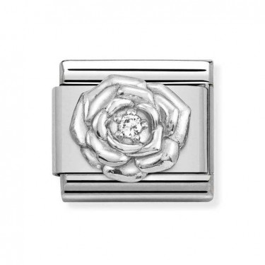 Original Charm for the Classic Composable bracelet in stainless steel, sterling silver and Cubic Zirconia with "Love" written out and an Arrow symbol. Made in Italy. The perfect Charm to show your special someone that your love is infinite!