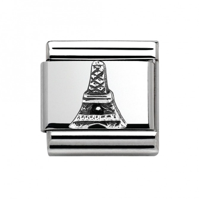 Best-seller Original Charm for Composable Classic Bracelet in stainless steel and sterling silver. Eiffel Tower, Paris Charm. Made in Italy. Several monuments available from all over the world.