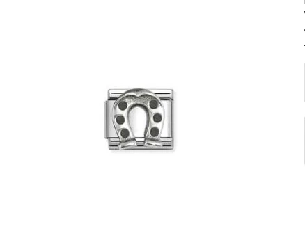 Nomination Original Charm for Composable Classic Bracelet with Horseshoe symbol in stainless steel, sterling silver and black enamel. Made in Italy. The horseshoe represents good luck and protection.