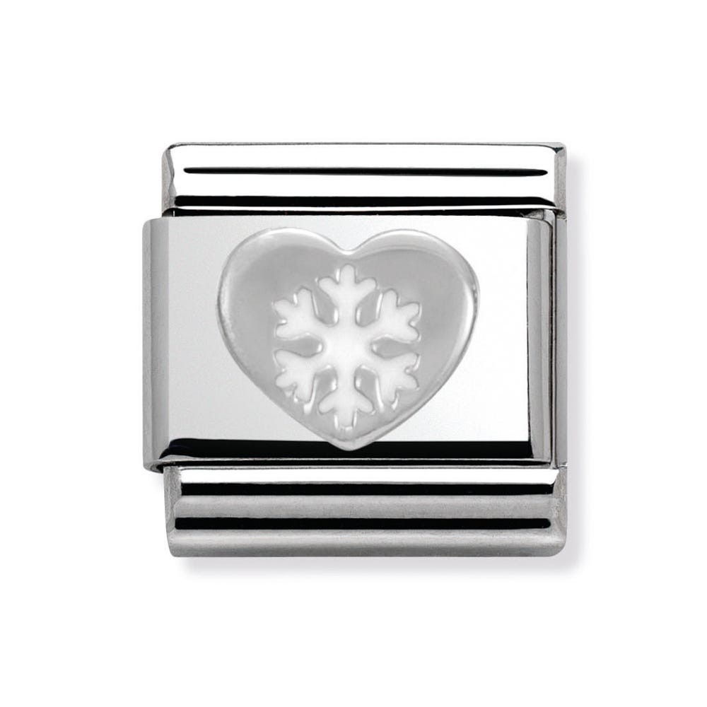 Nomination Original Charm for Composable Classic Bracelet with Heart with Snowflake symbol in stainless steel, sterling silver and enamel. Also available in other Christmas symbols. Made in Italy. Show your holiday spirit with a precious Charm.