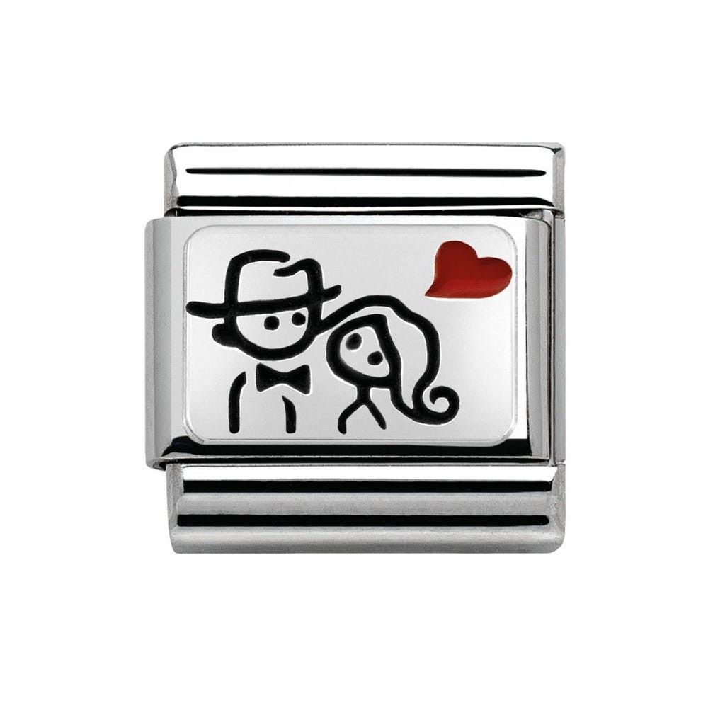 Charm for Original Classic Composable Bracelet in stainless steel and sterling silver with Couple with Heart. Made in Italy. Choose your favourite ode to love!