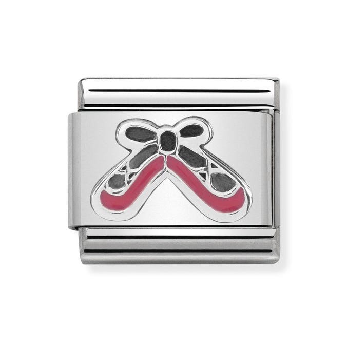 Original Charm for Nomination's Composable Classic bracelet in stainless steel and sterling silver with Dance Shoes in pink and black enamel. Made in Italy. A proper ballerina knows the best way to wear these colourful shoes!