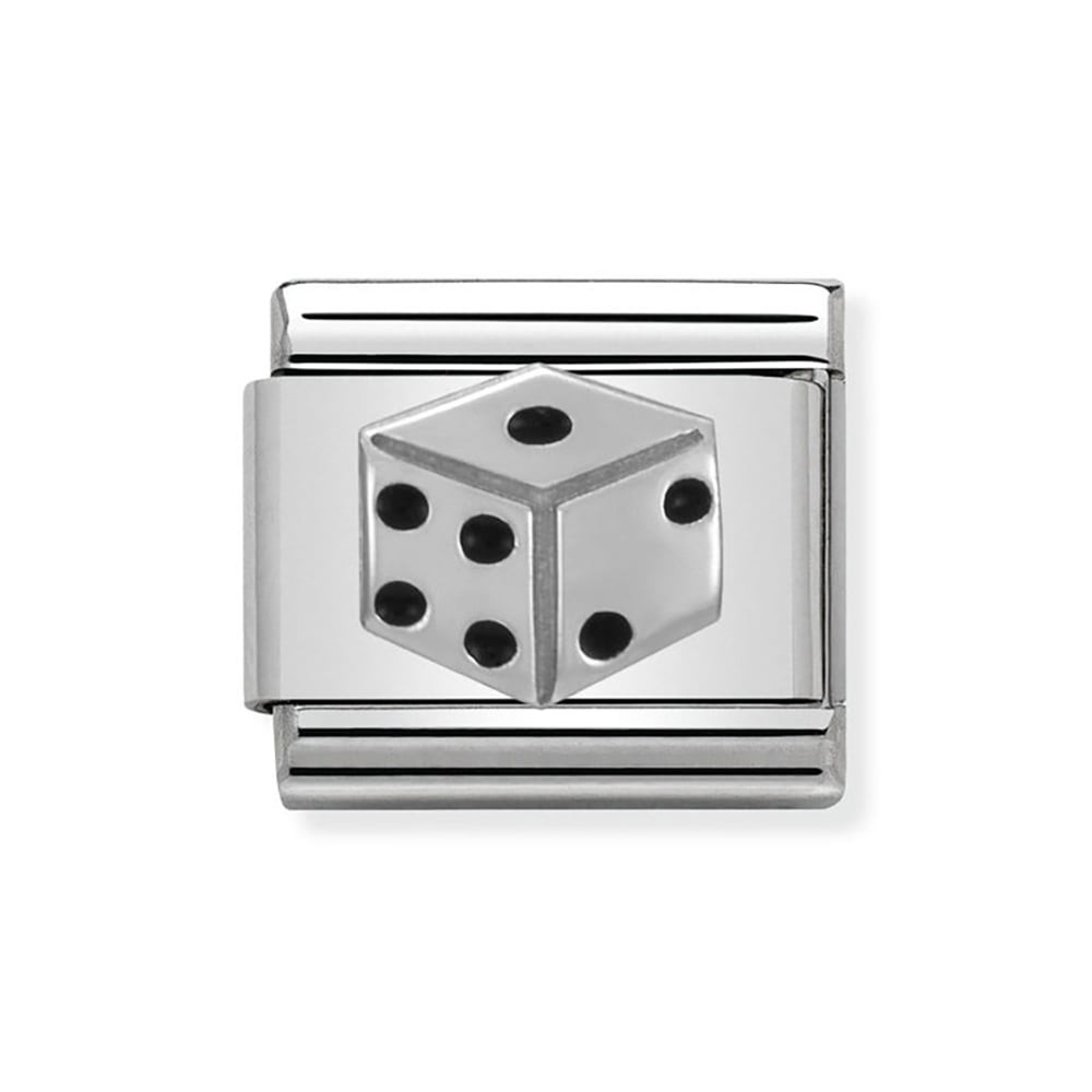 Classic Charm for Original Composable Bracelet with Dice symbol in sterling silver, stainless steel and black enamel. Made in Italy. Add your passions to your bracelet.