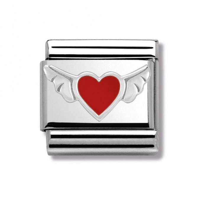 Classic Charm for Original Composable Bracelet with Heart with Wings symbol in sterling silver, stainless steel and red enamel. Also available in other Heart symbols. Made in Italy. The perfect gift for Valentine's Day.